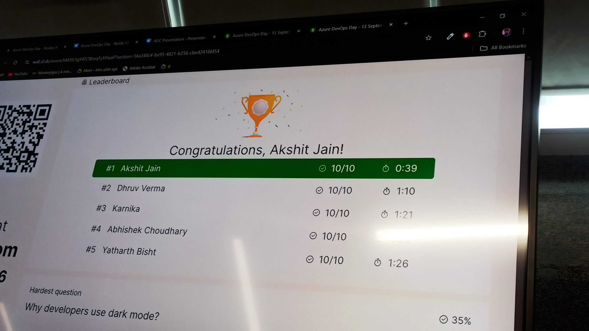 Intro to DevOps: collaboration, automation, CI/CD, infrastructure as code, key vaults, scripting. Arun Wadhwa on DevOps careers. Reskilll and Azure Developer Community; Devansh Singh Parmar, Sudhansu Kumar. Ranked #2 in the quiz.